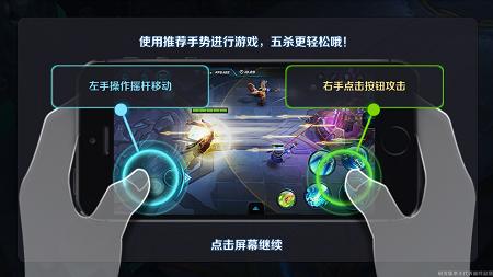 本作中采用的是虚拟摇杆加按键的操作模式,玩家可以左手控制人物的移动,右手控制人物攻击。游戏在一开始的时候有一个推荐的游戏手势,按照这样的方式拿设备比较方便玩家的操作,走位、放技能往往准确性更高。