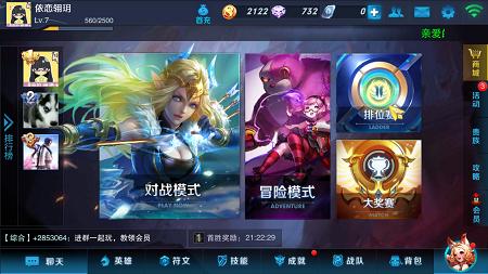 《王者荣耀》的主界面与腾讯的其他MOBA手游一样,UI设计非常简洁而且整齐,玩法模式的图标与其他系统图标就组成了全部内容。另外从屏幕四周的系统名称的排列不难看出设计者对于井井有序的贯彻态度~~