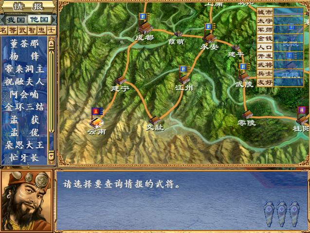 第六个剧本-三国鼎立,可选君主只有五位:曹操、刘备、孙权、彻里吉、孟获。三国君主就不考虑了,剩下的彻里吉和孟获,彻里吉被困在西凉,很难出来,也不考虑,那只剩下孟获。虽然没有猛将,但周围有建宁、交趾两个空城供孟获发展。
