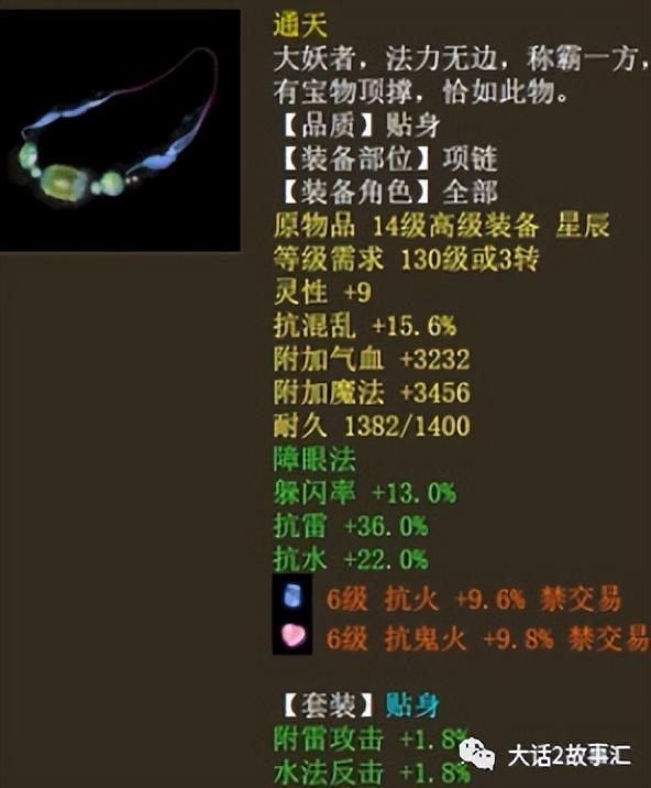项链的底子是灵性家9,抗混乱加15.6,炼化效果躲闪率加13,抗雷加36,抗水加22,作为任务型男魔,抗性的累积肯定是首位。