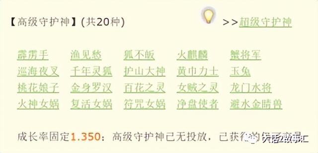 这位玩家收集了20只完全不一样的高级守护。如今随着鎏金宝宝的被动天赋技能以及神兽更高等级的灵犀技能面世后,高级守护和他们的强度差距越拉越大,但是不妨碍这些情怀宝宝在老玩家心中的地位。如果预算允许大家还是希望能买几只闲暇时观赏。