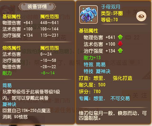 对于法系门派来说,破血一点用都没有;但是,玩家可以通过洗特技的方式,得到自己想要的特技。能够买得起这样的装备,肯定也洗得起特技。当143法伤、敏魔双加、简特结合在一起,使得这把70级武器变得不一样,问题来了,它到底能值多少呢?