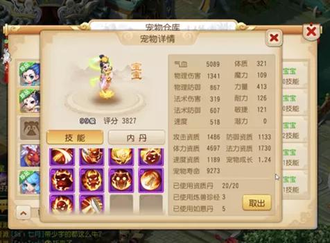 不过再仔细观察这只宠物的详情后,却发现一个容易被忽视的问题,这只芙蓉仙子技能栏中7号位所搭配的生存技能竟然是高级固法!