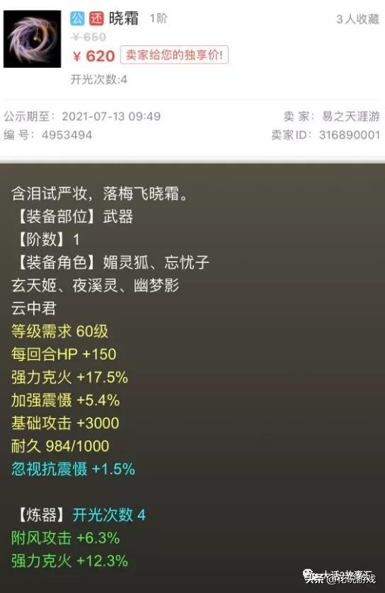 大家好,欢迎来到今天的大话西游2故事汇。大话西游2中有许多装备逆袭的案例,今天给大家带来一些被几率垂青的极品装备。首先给大家展示一件极品的一阶仙器。这件挂牌价620元的一阶仙器价格远超日常用来垫底升级的一阶仙器,它的卖点是什么呢?