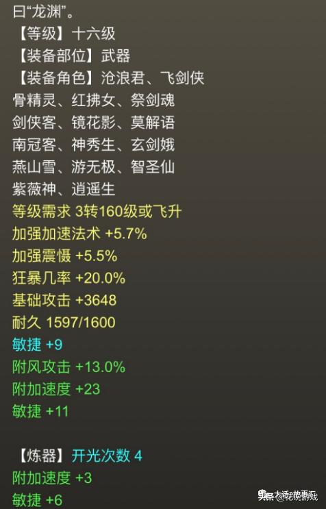 总共敏捷速度加了52,在16级装备这个档次的话,应该是敏魔能买到的天花板了,如果pk中双方敏魔都没有仙器,这就是极限武器了。不过有个尴尬的情况是没速之前比别人快,速了没对面快了,哈哈!