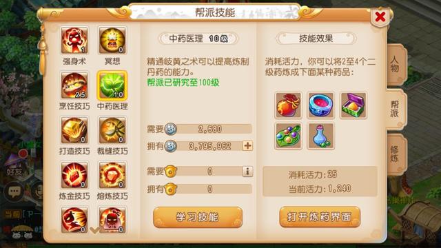 在游戏中活力不但可以直接制作临时符,还可以通过学习帮派技能,消耗活力进行烹饪、制造陨铁等道具。首先以临时符举例,临时符是50级才可以制作的,一张消耗25点活力,而目前新区一张价格就在252金币,4张就有1008金币,这个价值以及远远高于直接兑换了。