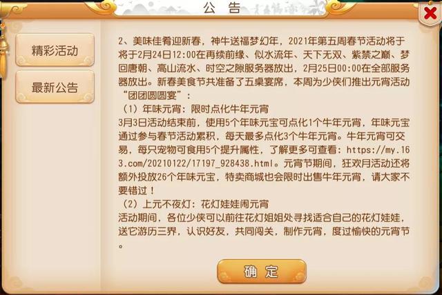 以上就是本次更新的重要内容啦!灵儿提前祝大家元宵节快乐,在游戏中参加活动能够收获满满!如果大家对本次更新有什么想法,欢迎在文章下方留言参与互动讨论哦。