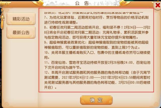 年味元宝点化元宵:在3月3日之前,玩家使用5个年味元宝即可点化1个牛年元宵,每天最多可点化3个牛年元宵,每只宠物可食用5个提升属性,想要提升宠物实力的小伙伴可千万不要错过这次机会哦!并且在狂欢月期间还会额外投放26个年味元宝,大家在春节活动期间一共可以获得50个年味元宝,可点化10个牛年元宵,赶快行动吧!花灯娃娃闹元宵:在元宵节活动期间,玩家可以前往花灯姐姐处寻找自己合适的花灯娃娃, 与它一起游历三界结识好友,共同闯关制作元宵,度过难忘的元宵佳节!上元灯谜赢奖励:除了花灯娃娃外,花灯姐姐还为大家准备了上元灯谜活动,在玩家参加玩法回答灯谜后不仅能获得甜蜜汤圆头像框,同时也有感恩锦囊与大量节日积分等你来领取!仙神送福、赏味挑战、三界灵气等活动在本周将继续开放,大家可千万不要错过哦!划重点4:赛事玩法战斗结算规则调整