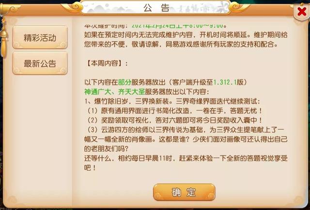 为了给大家更好的游戏体验,在本周继续对部分服务器每日早晨11时的三界奇缘玩法迭代更新进行测试,除了将原有的界面简化改造,答对6题获得当日奖励的“福利”外,同时还有三界人物的全新肖像画,大家赶紧去体验一下吧。