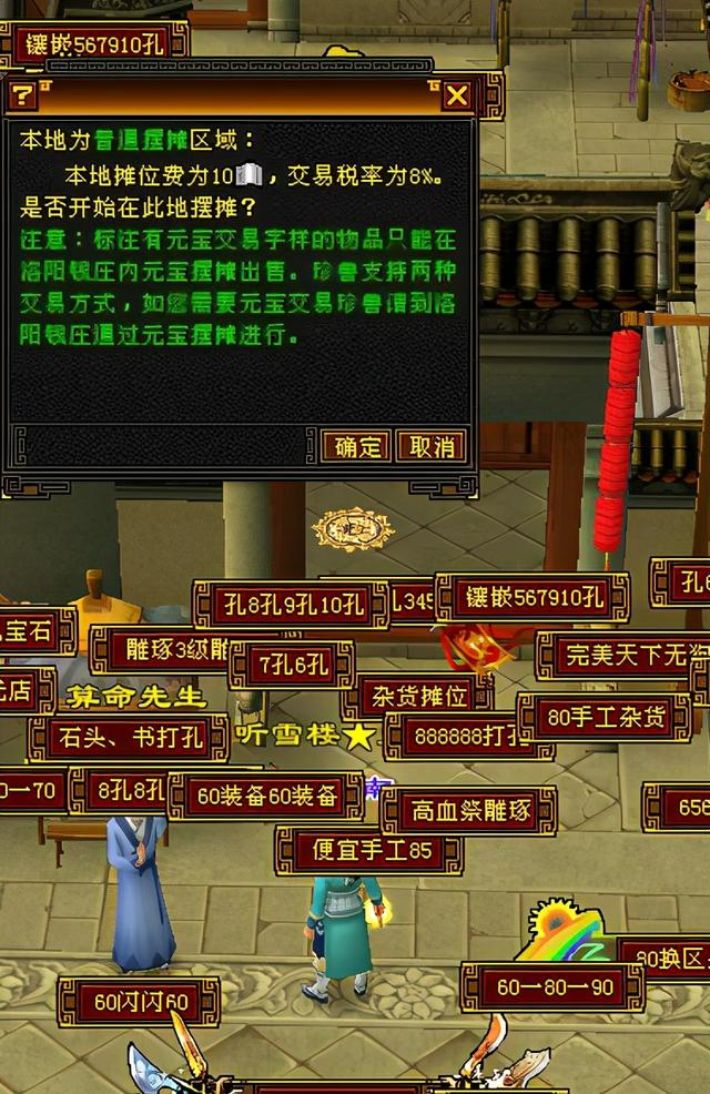 开始玩天龙怀旧时我并不是老玩家,火爆的时候好地方一摊难求,看到一些在大路中间,NPC旁边摆摊的,我试着摆却摆不下去,后来问了一些人,要么不知道,要么说是脚本摆摊,后来还是有位老玩家告诉我是利用轻功或者门派的一些瞬移技能(逍遥和武当的瞬移)。