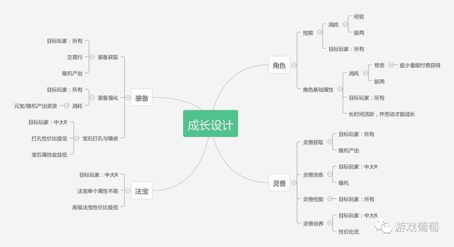 其次,提供卡等级玩法将玩家进行分层,不想竞争压力过大的玩家选择卡等级慢慢成长,在同等级段也能获得良好的游戏体验;最后,《倩女》在成长设计与付费设计上,以相对较低性价比出售能力,保证能在各个阶段都能保证能力差距不过大。先让我们看看成长与付费的框架: