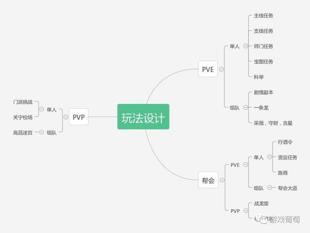 在玩法设计上,《倩女》以单人组队PVE玩法为主,下图简单的对玩法进行了分类(以早期版本为准,这样的好处是可以更清晰的了解设计者原始设计思路)