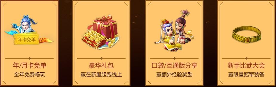 在新服开放后30天内,玩家可以参与年月卡免单福利。活动开启后,玩家只要将点卡转化为月卡或年卡,即可向梦幻精灵报名参与本次活动,赢取年卡或月卡的免单福利!当玩家进入新服后,还可以在礼包中心输入序列号兑换“新手挑战特权礼包 ”。打开礼包即可获得飞行符、梦幻币等丰富奖品。