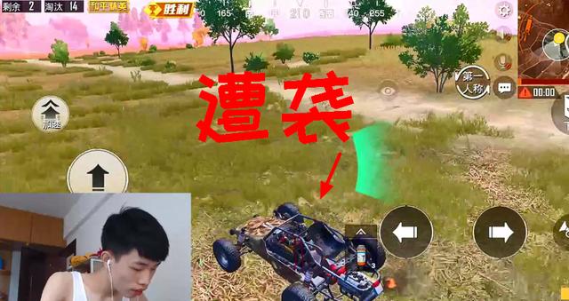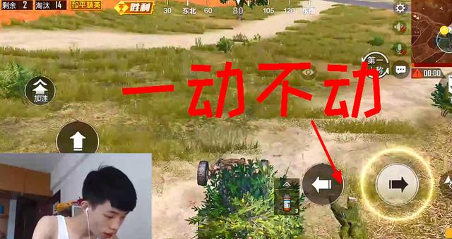 在经过一片草丛的时候,我们可以清楚的看见在这个草丛的旁边趴着一个穿着吉利服的玩家,不过这个玩家非常的机灵,一动不动的,让他这个开着车快速移动的人完全看不清,而且仔细观察会发现这个玩家光着脚,可谓是个经验十足的老玩家。