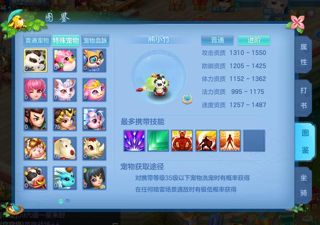 0-45级宠物一般被大家叫做新手宠物,其中不仅包含了强盗、蝴蝶精灵这样的怪,也有像嵩鼠、吉祥这样的特殊新手宠。在外形上面,这些宠物各具特点,而且低等级宠物的洗宠丹消耗较少,因此有不少的新手都喜欢有一二百丹之后就洗这些宠物。但其实,新手阶段我们只需要一个熊小竹即可应对很多玩法,抓鬼、主线等都可以求助大神玩家,对于宠物的要求并不高。所以,各位小伙伴在0-45级还是不要考虑洗宠。