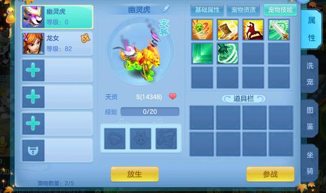 从适用性和性价比来说,这个等级段最值得洗的宠物是幽灵虎,75级可以解锁最多可以获得六技能的宠物。六技能在游戏中是核心类型的宠物,打造方式多样,只要能够洗出一个不错的六技能幽灵虎,甚至到115级还可以使用。