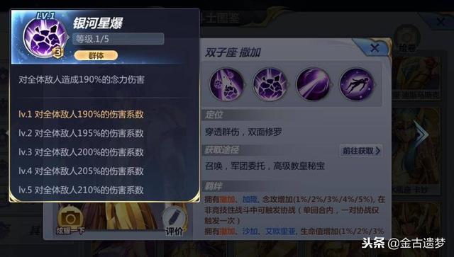 撒加早期是挂机神器,优秀的清小怪能力,让玩家很是喜欢,但PK能力较弱,开荒能力也不行,就逐步被玩家放弃了。最近版本有更新,逐渐加入了PK领域,尤其是当前版本可以和弟弟加隆做配合。目前来说,很舒服的英雄,抽到了你会有一个很舒服的体验。