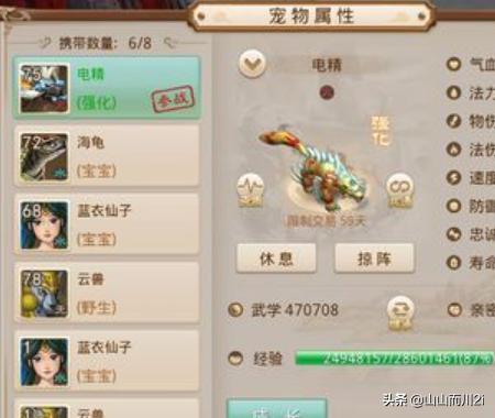 3、再者就是宠物宝宝了,对于体木来是说一个好的宝宝是很关键的,因为它是你的主要输出,宝宝的加点现在一般都很粗暴,法伤4灵,物伤4力,防御4体,速度4敏,宝宝还有个好处是可以jiā妖石,妖石可yǐ增加宝宝的属性,所以完全不用担心宝宝的速度不够啊,妖石只能加三项属性,练什么宝宝加什么属性,现在版本对宝宝改动很大,宝宝的属性还有很多额外的加强,点击宝宝页面的成长,里面有强化、点化、进化和幻化都可以加强宝宝属性。