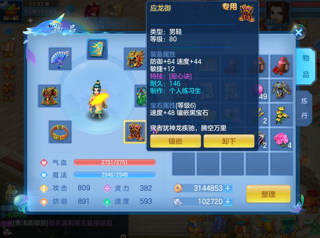 因为是一速封,所以在装备的打造上面我们需要更多的速度加成,比如说鞋子的特效"迅捷",还有各个可以镶嵌黑宝石部位的易成长,还有其他部位的高敏捷装备,这样打造下来,很容易就可以拿到一速。