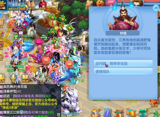 《神武4》手游中捉鬼是一个多人队伍任务,要求人物等级大于20级的3人以上队伍,然后点击日程活动界面点击捉鬼任务就可以传送到长安城钟馗旁边了,然后跟着任务提示找到相对应的怪进行战斗就可以了。每天前40只鬼获得正常奖励,之后奖励衰减,队长可获得额外20%的经验铜币,每天捉满40只鬼,若不领取双倍点数,无法继续领取任务。