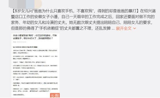 有一次年仅5岁的女儿问爸爸,为什么只喜欢手机而不喜欢自己?这名脾气暴躁父亲听了之后不但毫无触动,而且还将女儿暴打了一顿。试想一下,这名5岁的小女孩可能只不过是想让爸爸多陪陪自己,结果换来的却是一顿毒打,她的内心该有多痛?