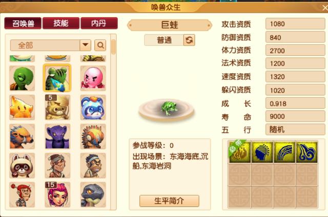 巨蛙代表着法宠,有法术输出,有慧根辅助。