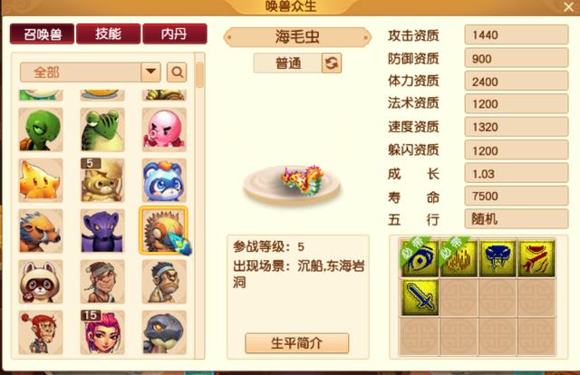 海毛虫代表着攻宠,有必杀有夜战有毒,都算是输出技能,攻资1440,在45级以下都算是高的。早期的梦幻都是一只海毛虫带到69直接换瑞兽的。