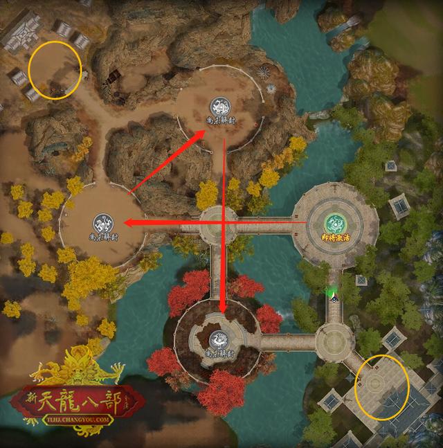 白虎结束就到了玄武,玄武祭坛宋方需要迂回前往,先走到战场中心点,然后往上走到玄武祭坛,由于这里离辽方复活点最近,抵抗也是最激烈的,所在阵营太过强势的时候,往往会跑到祭坛外面打,混分小分队不要出圈;