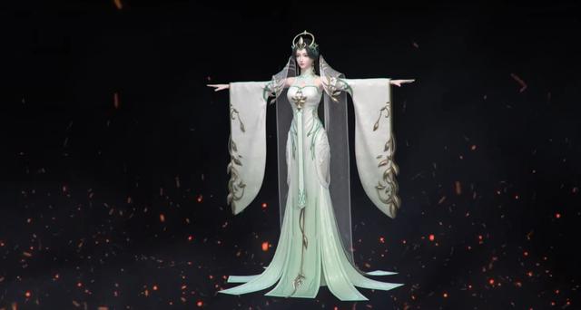 如此巨大的柳条发饰,不但没能添彩,反而有点头重脚轻的感觉,肢体不协调,而且过于繁重。或许官方是想彰显她的威严,但是柳神根本就不需要,因为她是端庄典雅,真正的仙女。