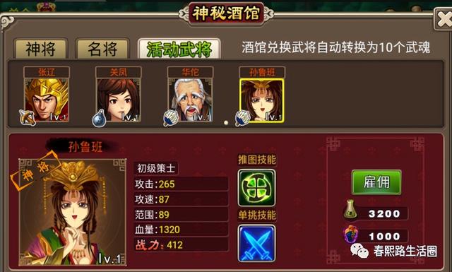 以上就是塔王之王游戏中本期活动武将技能的技能介绍,希望能给大家带来帮助!更多游戏攻略、游戏福利礼包尽在【春熙路生活圈】哟!