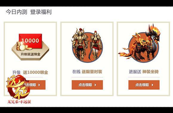 你一定期待过,游戏充值也可以像麦当劳一样第二份半价,可是仅仅半价就真的满足了吗?NONONO!在《远征》,我们第二份“免单”!不仅如此,还为玩家准备了多种其他福利,分享活动界面立即获得金券!根据账号鉴定结果评定账号等级,等级越高可领金券越多,万元金券秒如囊中!助力你从游戏的一开始就成为高级玩家,装备大佬!