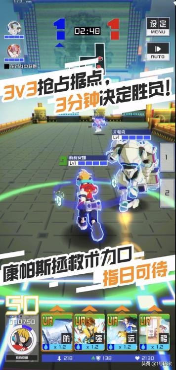 3V3抢占据点,3分钟决定胜负,竖屏多人即时对战游戏,在短短的三分钟里合理运用技能卡组及角色的专属技能,反败为胜才是重点。
