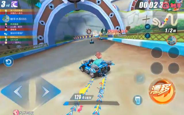 可能是因为引擎不给力,刚开始,水系的车是落在最后的,这时候需要一个甩尾飘移来提一下速度