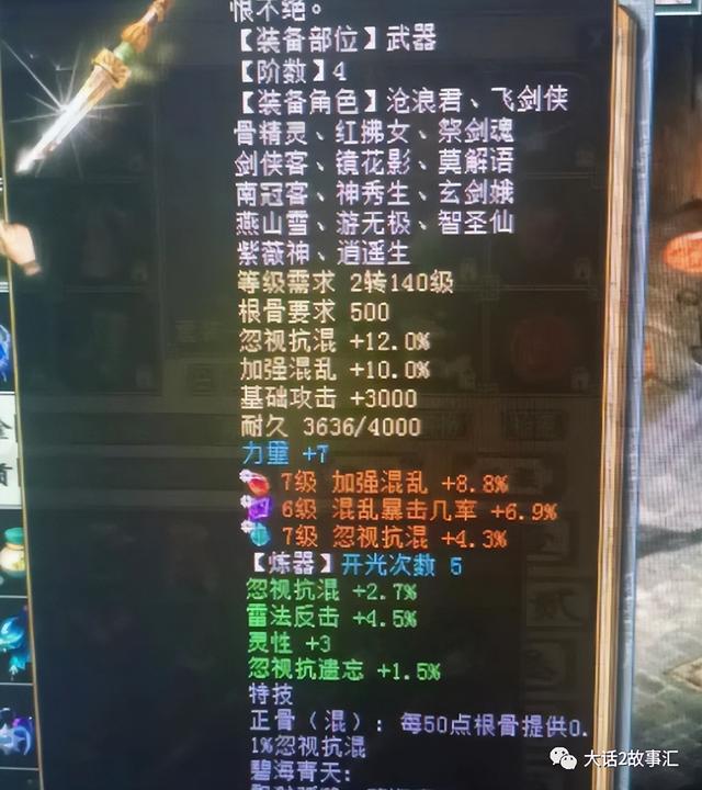 四阶仙器底子忽视抗混加12,加强混乱加10,炼器忽视抗混加2.7,灵性加3,特技是正骨混,三颗宝石7级的忽视抗混加4.3,加强混乱8.8.