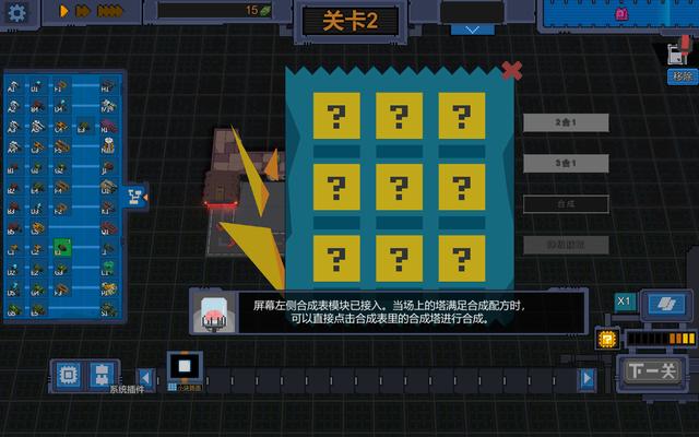 在传统的塔防游戏中,防御塔往往是用游戏中的货币购买、升级的,塔的种类是固定可选择的,玩家的策略完全决定了游戏的走向。但是在《变量》中塔是由玩家在一个九宫格中抽取的,每一关玩家可以选择抽取三个格子,从中选择自己想要的防御塔,如果出现一样的可以选择二合一或者三合一,如果恰好三个塔符合合成表那么可以直接选择合成,如果只有三个完全独立的塔那么没办法只能选择其一。