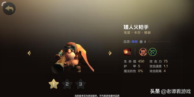 这个棋子连名字都没变,只不过少了个脑袋,难道需要升星才能够解锁,老谭不知道,这个手游的解锁机制,是需要在游戏中,升星后,才能够看到下一个等级的模型。蓝胖,你脑袋咋还丢一个。