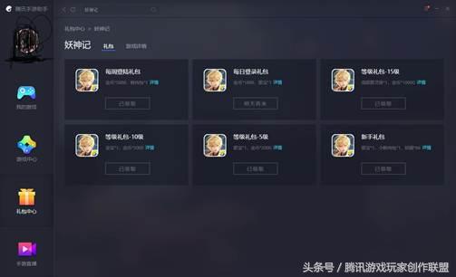 腾讯手游助手(PC端):左侧礼包中心,点进以后找到游戏,即可领取。