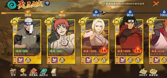 无尽玩法说实话还是比较考验忍者池的,好用的忍者希望尽快入手,对挑战排名比较有帮助。如果玩家觉得太刷脸,或者难度较高,可以静等降低难度。黑狗根据馆长的情报,无尽玩法最后难度会降低到很低的程度,最后基本都可以速通,不在意排名的话,不用头铁,静待降低难度就行。