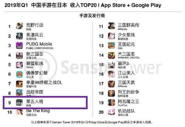 《第五人格》排名闯入营收TOP30