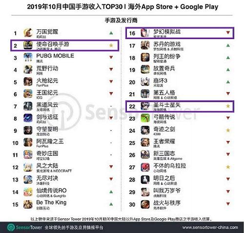 据Sensor Tower数据显示,《圣斗士星矢》《梦幻模拟战》《使命召唤手游》成功打入国内手游营收TOP30榜单。《我的世界AR》是今年AR领域的试水作品之一,首周营收达1.2万美元,在App Store和Google Play实现140万下载,低于《Pokemon Go》(3270万)与《哈利波特:巫师联盟》(310万),但强于《侏罗纪公园AR》(57.3万)与《行尸走肉AR》(33万)。