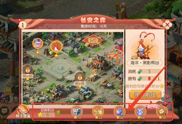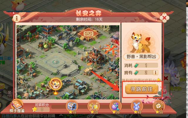 参与每日关卡活动需要消耗棋艺券,每次开启战斗都将会消耗一张棋艺券,每日登陆将会获得2张棋艺券,当天活跃达到60/100时,将会分别获得4张棋艺券。点击「寻路前往」即可自动寻路至长安之弈各小怪关卡处进行挑战。