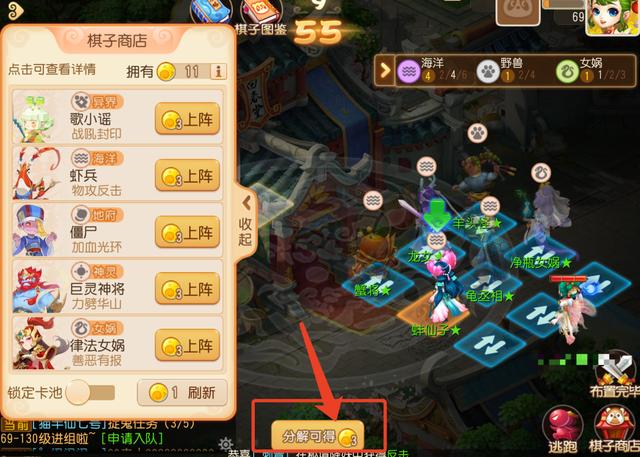 少侠可以在准备阶段将场上的棋子分解,分解后将获得购买和升星这枚棋子消耗的等量能量点数,点击棋子进入操作模式,点击下方分解棋子,就可以成功分解棋子了。