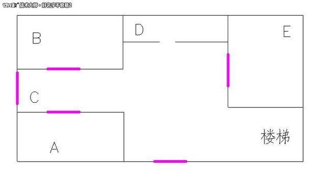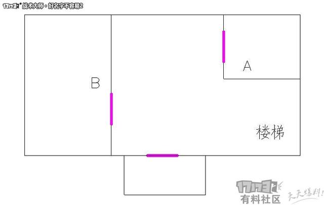 二层住宅一楼e处的小房间也有一扇窗户,该房间的防守方式类似于B处。