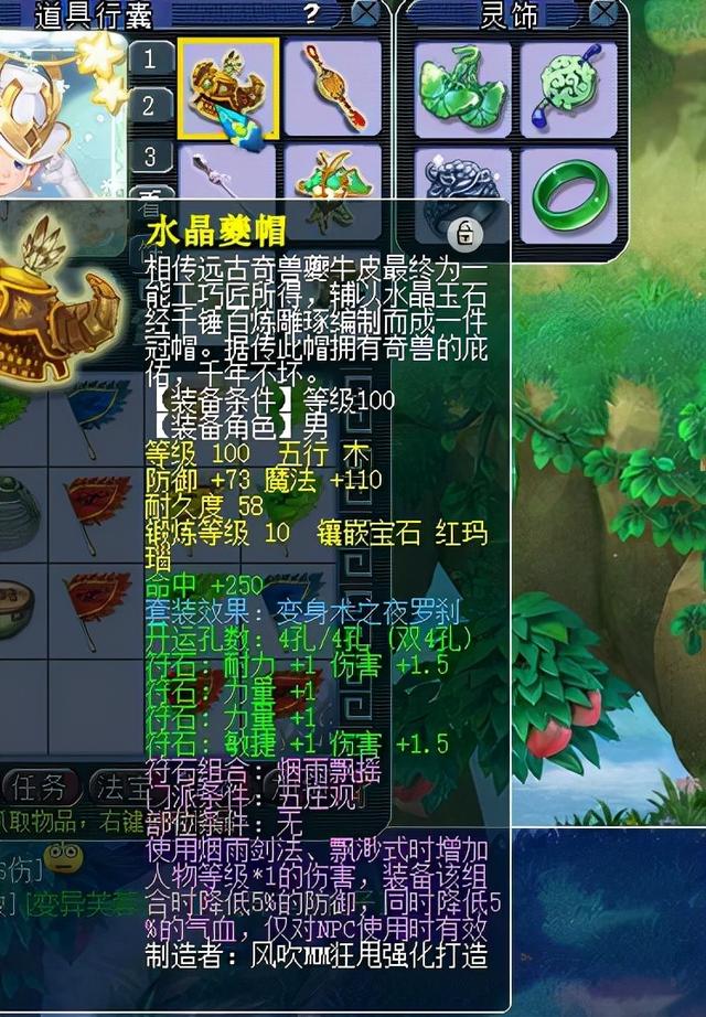 灵饰装备配置的属性是这样,前排配置的都是100级装备,接着附加了三伤害一法术暴击属性,耳饰附加的属性为双伤害一封印命中。