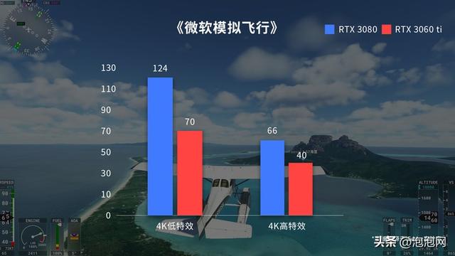 使用iGame Ultra的RTX 3080体验《微软飞行模拟器》能够获得流畅效果,为了得到最佳的画质体验,iGame实验室选择了3840*2160的分辨率进行测试。低特效下能够达到124帧,在开启最高特效下游戏也能够到达66帧稳定运行的水平。RTX 3080作为高端型号,有着极强的性能。而对于入门级产品而言,也依旧有着可观的数据,使用iGame GeForce RTX 3060 Ti Ultra W OC 10G LHR进行测试,分辨率仍为3840*2160,在最低特效情况下能够得到70帧,而在最高特效之下也能够稳定在40帧,可见RTX 30系列的强劲性能。