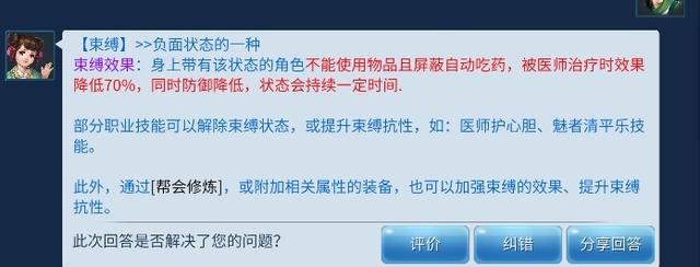 从束缚的介绍上我们可以看出,屏蔽吃药,不能使用物品,被医生治疗效果降低70%,同时防御降低,持续一定时间。