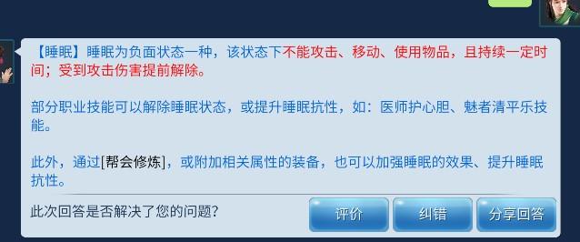 睡眠状态下不能攻击移动使用物品,持续一定时间。