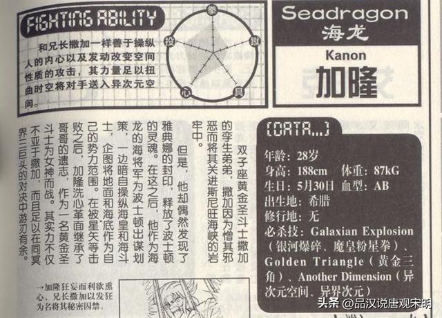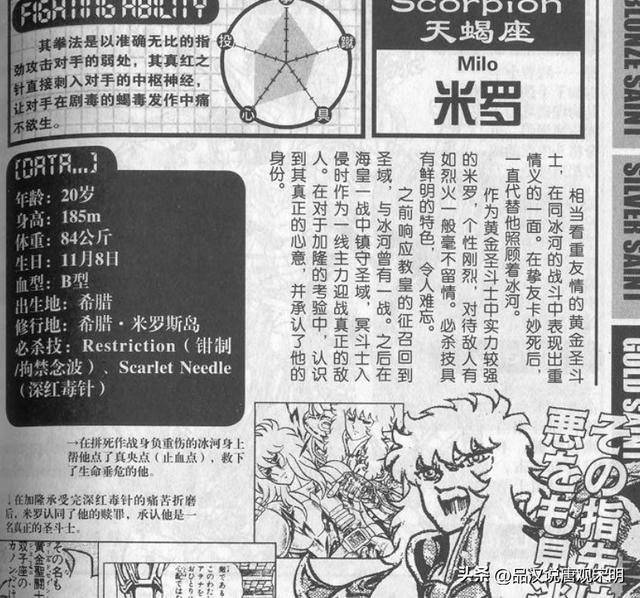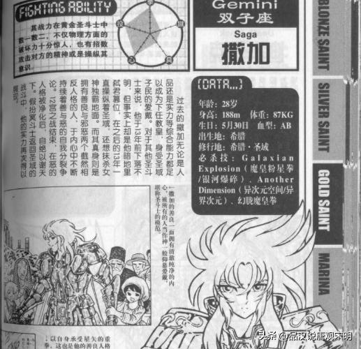 2 身高:虽然普遍都是身高马大,但是黄金圣斗士里还是可以区分出正常与超标的身高来的。说完了年纪,我们再来看看这些黄金圣斗士的身体素质。