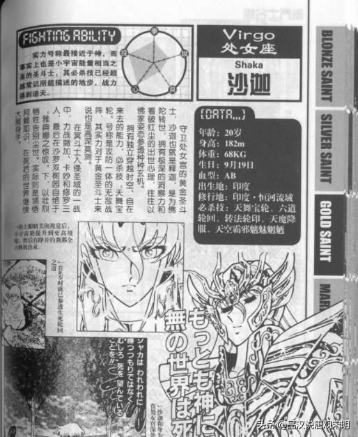 而沙加则只有68KG,吃素的人果然更苗条,所有黄金圣斗士里最瘦的人,其实就是沙加。包括身高和体重的话,沙加反而是所有人里最袖珍的那一个。