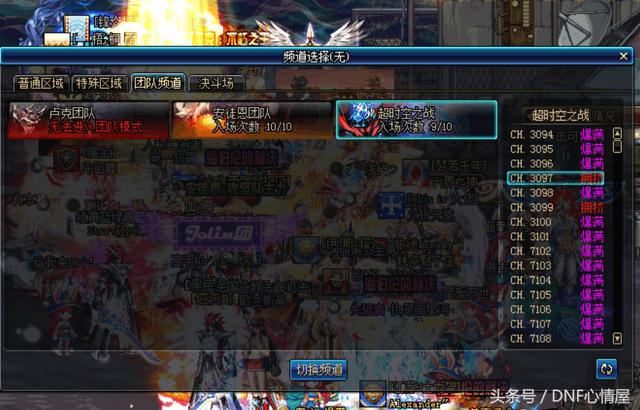 首先,跨五大区超时空之战频道都呈现爆满的趋势,前面的频道,除了零星的拥挤,其余的都是爆满,可见,超时空副本,在跨五极其的受欢迎,每个人都想,在开荒上分得一枚羹。而当你随便进跨五大区超时空副本一个频道时,副本门口都人山人海,而且都光环肆虐,这应该都是超时空副本的主力军,为开荒副本奠定基础。我想,应该,这就是跨五大区的“精锐部队”,每一个角色,除了辅助奶以外,输出都是B套起步。